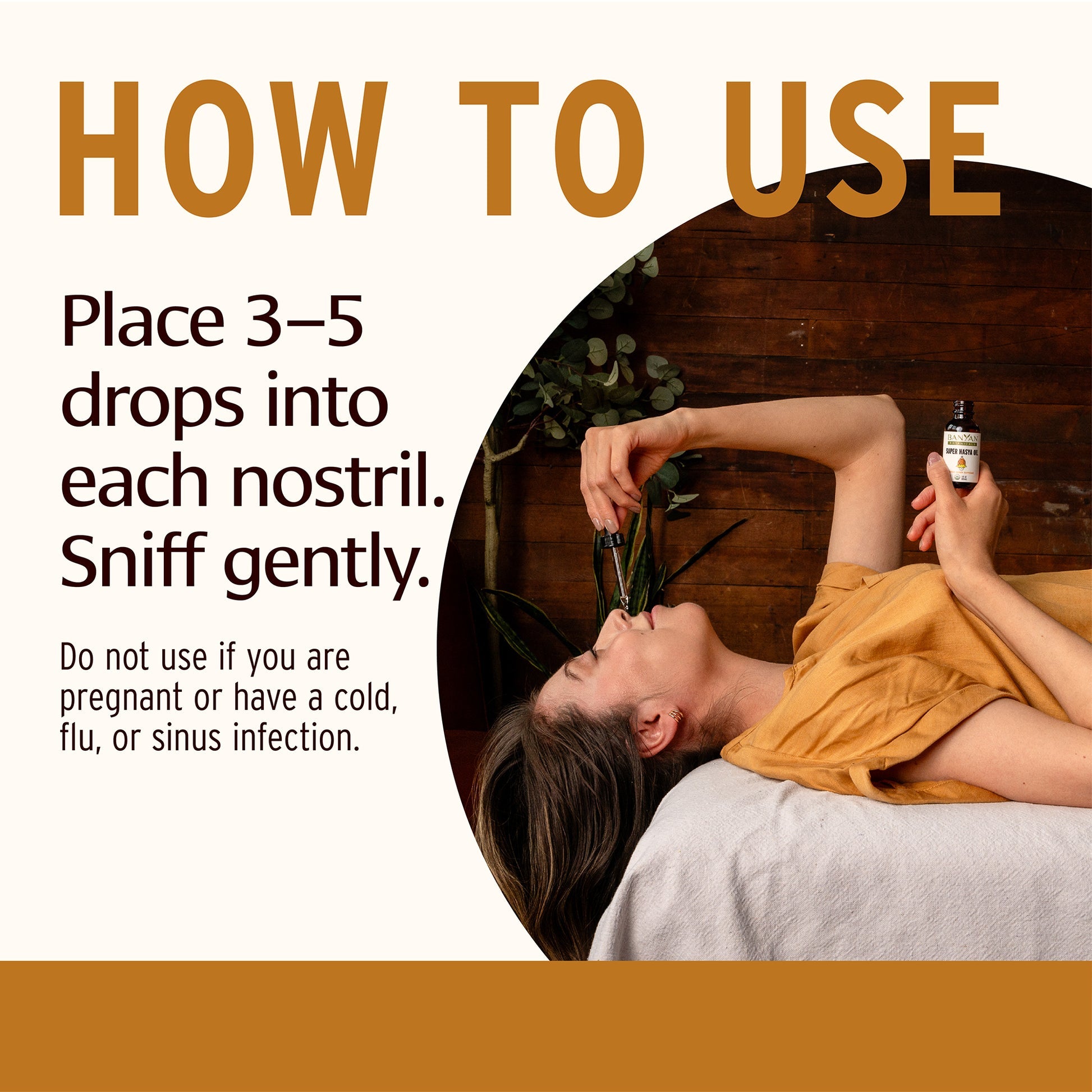 Gotero de aceite nasal con hierbas orgánicas. Formulado por el médico ayurvédico Vasant Lad, BAM&S, MASc, este potente lubricante nasal es ideal para momentos de limpieza. Equilibrador para todos los doshas, su cualidad despertadora y refrescante despeja la mente y puede ayudar a aliviar la congestión ocasional, mientras que las suaves propiedades de la rosa y el sándalo apoyan el bienestar emocional.